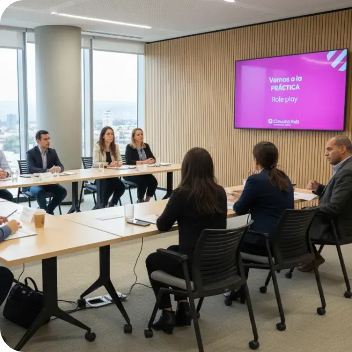 Llevamos nuestra metodología directamente a tu empresa, adaptando cada entrenamiento a tus retos específicos. Trabajamos sobre los casos reales de tu equipo y enfocamos las sesiones en generar resultados medibles: más cierres, mayor rentabilidad y un equipo capaz de vender sin depender de descuentos.